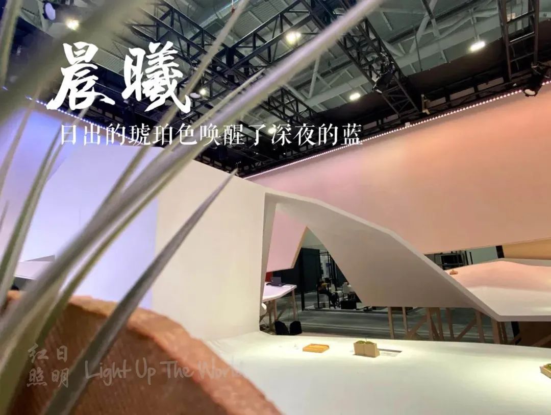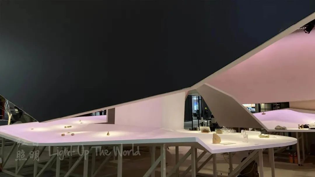 对于展位的功能属性,射灯的照明突出了展品,引导参观者的视线集中在展品上,通过灯光明暗来做心理暗示。借以起伏的山丘,有层次的光环境,舒适的影子让整个花园更具备空间性。