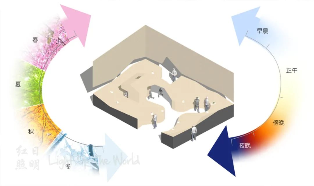 亚里士多德说过:时间无非是对变化的量度。让光动起来,情绪也跟着带动,便有了“时间”,控制系统的场景切换呈现出了花园昼夜四季的更迭。