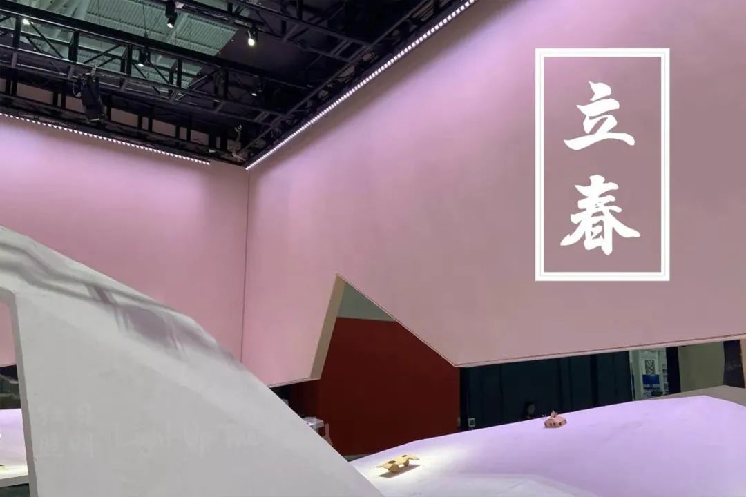 在四季模式中以色光渲染背景氛围为主,汲取自然界中春夏秋冬的特征颜色,采用洗墙的照明手法均匀洗亮展位的围墙,带入一点沉浸感。运用射灯对展品进行提亮,让展品为焦点作视线引导。