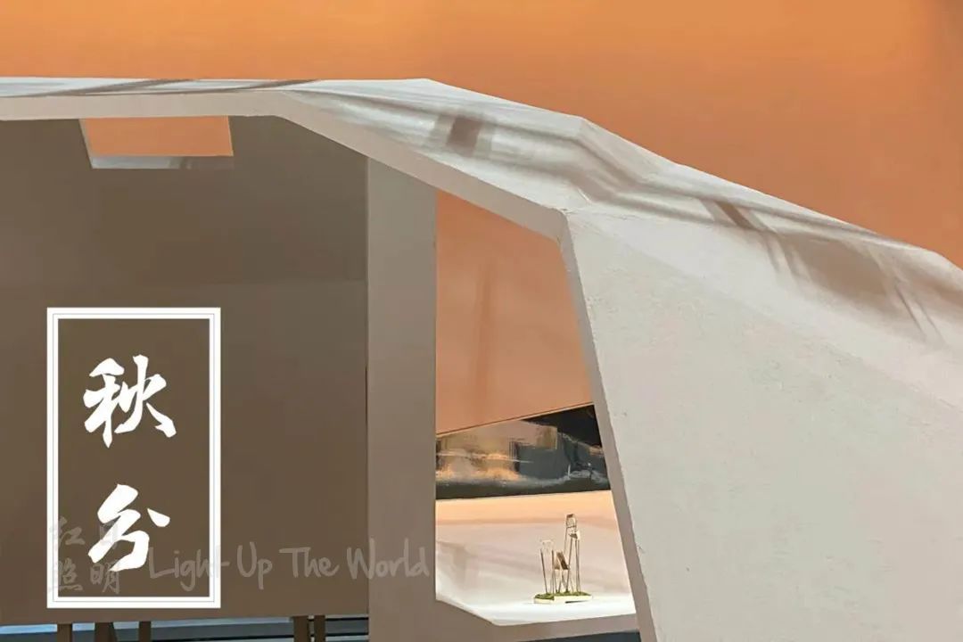 昼夜模式是选取一天当中朝、午、暮、夜为四个独立场景,利用自然界天空的色温变化对围墙进行不同色温的处理,与四季模式不同的是,昼夜模式在顶部桁架上添加了大功率射灯,用来模拟太阳照射方向,从而对展位进行光影处理,结合天空色温的变换,让参观者感受从早到晚的光阴流逝。利用小屋的开窗造型,特意引导光线进入小屋中,活跃屋内空间情绪