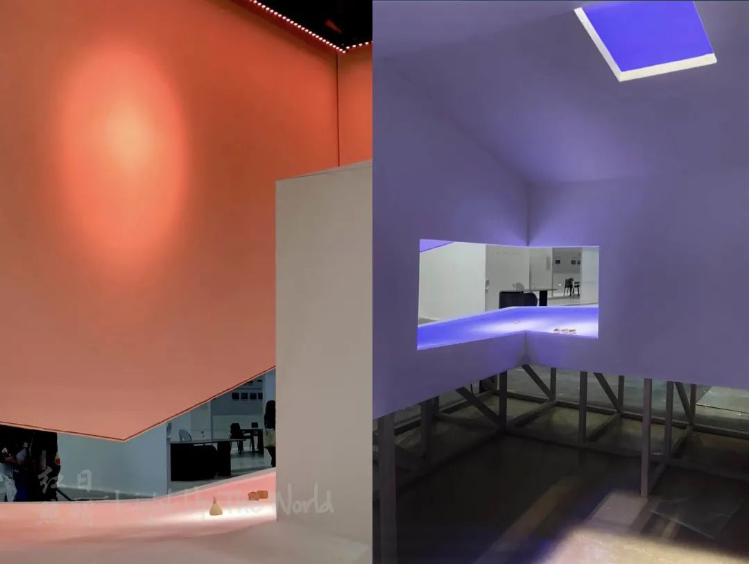 基于人体视线感官原理,在平视中眼球对立面接收的光线比例远大于平面。利用围合的空间设计,通过灯光演绎展位氛围营造得到了很好的表现。